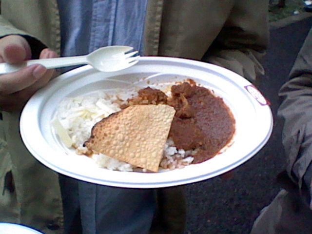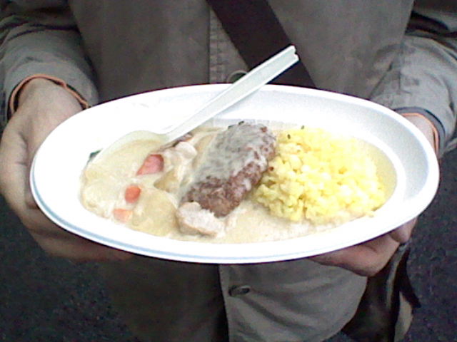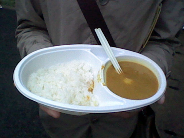 去年は2巡目で終わったけど、私はまだいけるなー、エブラック少なかったし、もうひとつのカレーうどんも食べてないしな感じだったので、1個かってみんなで分けようぜ、カレーうどんはもらうけどって提案。